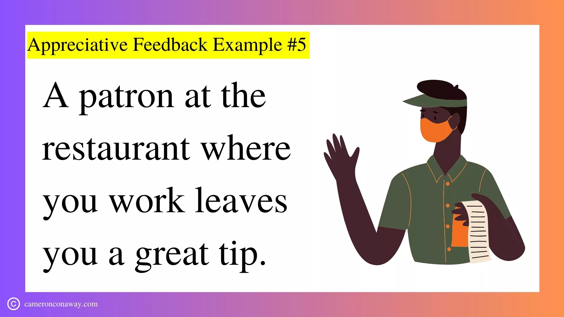 To solidify our understanding of each feedback type, here are 5 examples for each:
