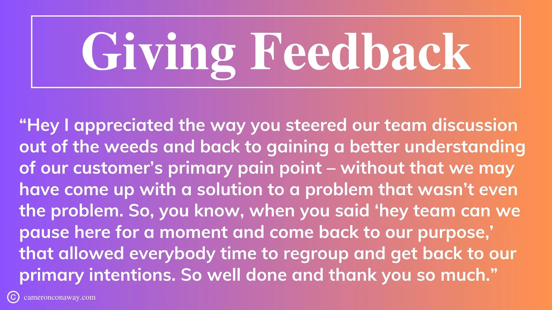 As you are likely seeing at this point, feedback can be challenging because human communication can be challenging. And we often exacerbate these feedback challenges when we split feedback into camps — as though one side is purely the givers and one side is purely the receivers, with little overlap between. This can result in, for example, not managers and direct reports building strong relationships so they understand what each may want and need and, from that place, forming an effective feedback relationship, but, rather, the manager taking a wild guess on what kind of feedback is helpful. Helpful, constructive feedback fills gaps in understanding. It can highlight strengths we didn’t know were strengths, and do the same with weaknesses… and then point the way to how we can maximize those strengths and shore up those weaknesses. In my current role, my manager and I have empowering and honest 1-1 conversations several times each month. And I try to have the same for those who report to me. As such, my manager has a great sense for what kind of feedback is most helpful.