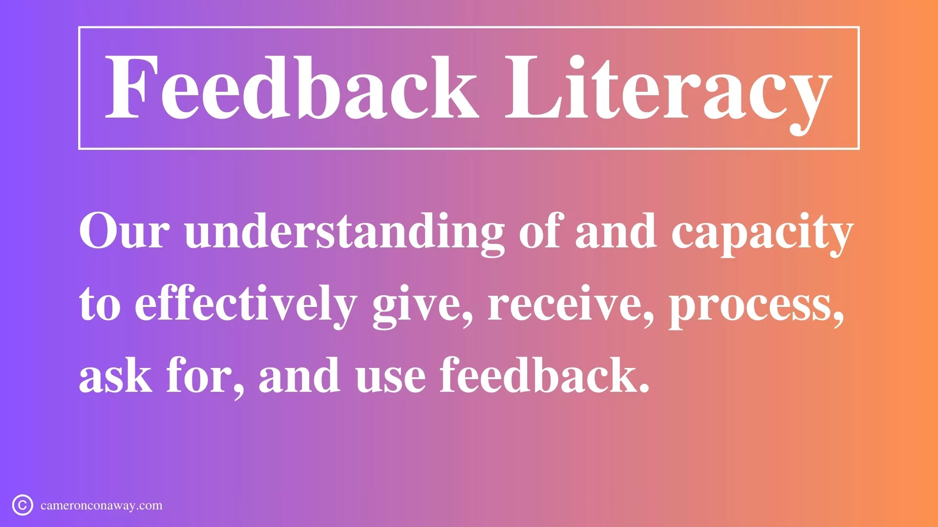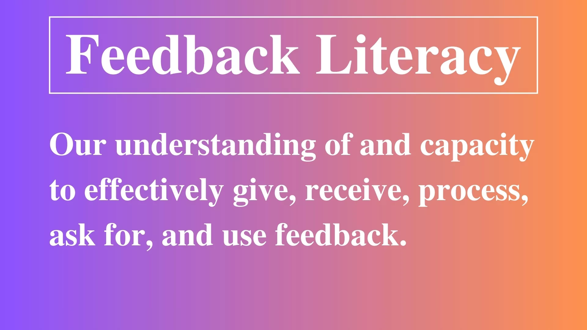 To wrap up our feedback definition section, I’d like to define one more term for you, it’s one we’ll mention several times throughout the course and explore in greater detail in a future module: Feedback Literacy.