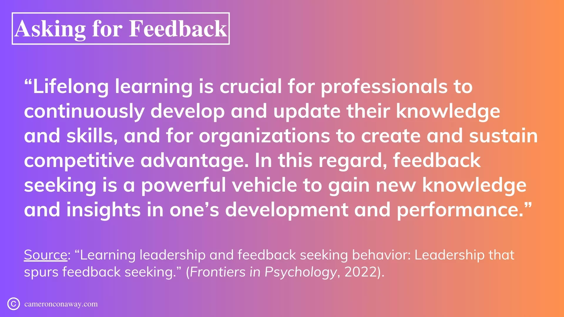 Even if we move out of the 1980s and into the modern era, we still find research highlighting the powerful role of asking for feedback. Consider this quote from a paper in 2022 titled “Learning leadership and feedback seeking behavior: Leadership that spurs feedback seeking.”