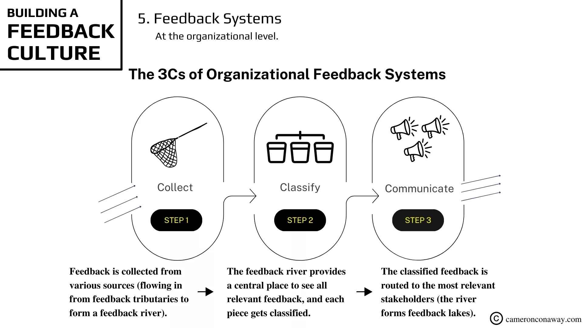 This mention of feedback collection leads us to Part 5, Feedback Systems at the Organizational Level, where we’ll cover what I call the 3Cs of Organizational Feedback Systems.