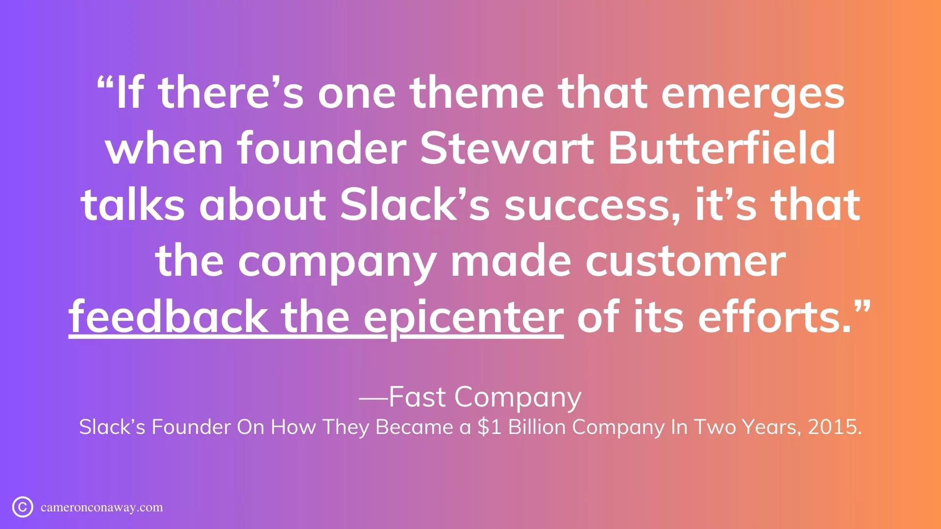 “If there’s one theme that emerges when founder Stewart Butterfield talks about Slack’s success, it’s that the company made customer feedback the epicenter of its efforts.”
