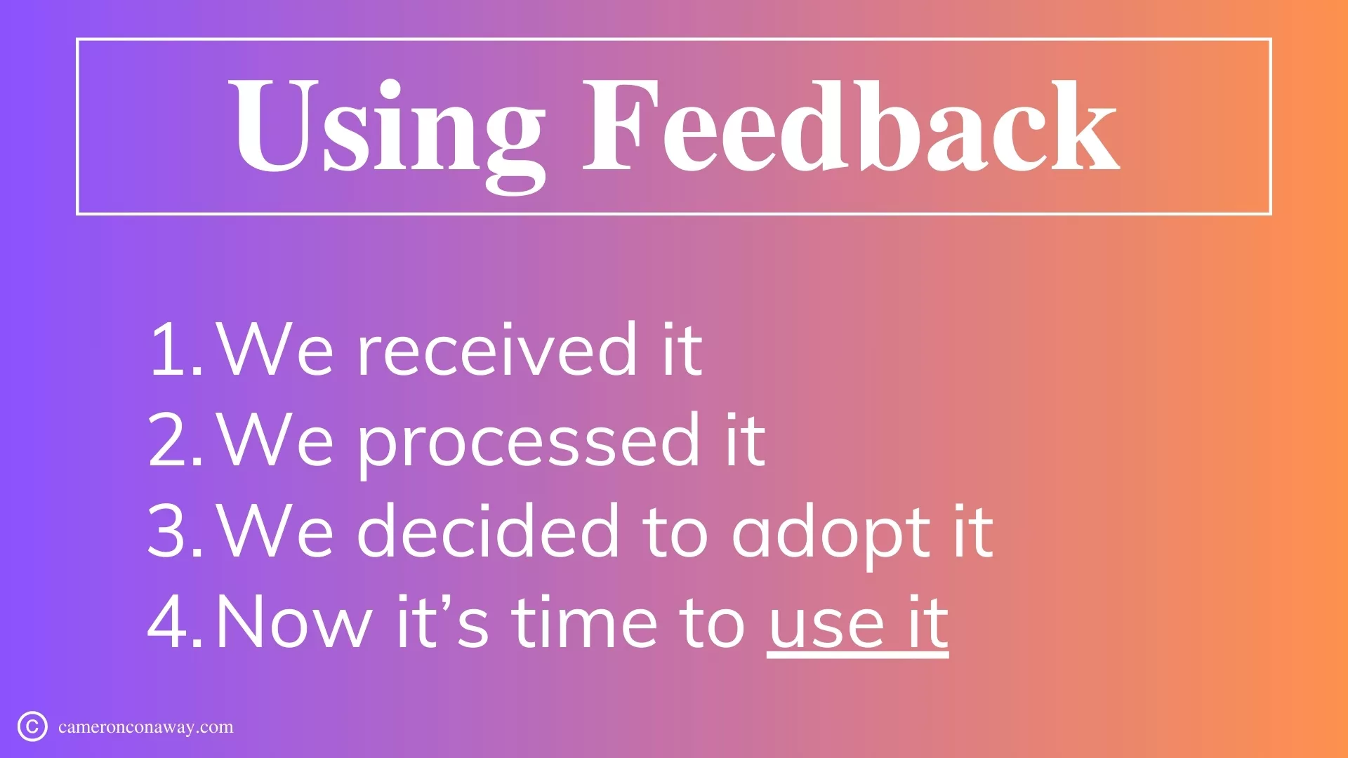 Once we know how to receive and process feedback, we’re in a great position to decide if we want to use the feedback. As with processing, there’s some nuances to making sure we use feedback effectively, so we’ll cover those in Module 3.